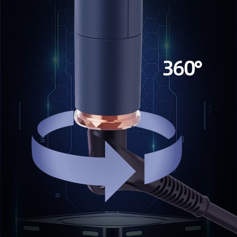 Detta portabla 3-i-1 stylingset har en 360° vridbar kabel som inte trasslar ihop sig och tillåter maximal rotationsfrihet.
