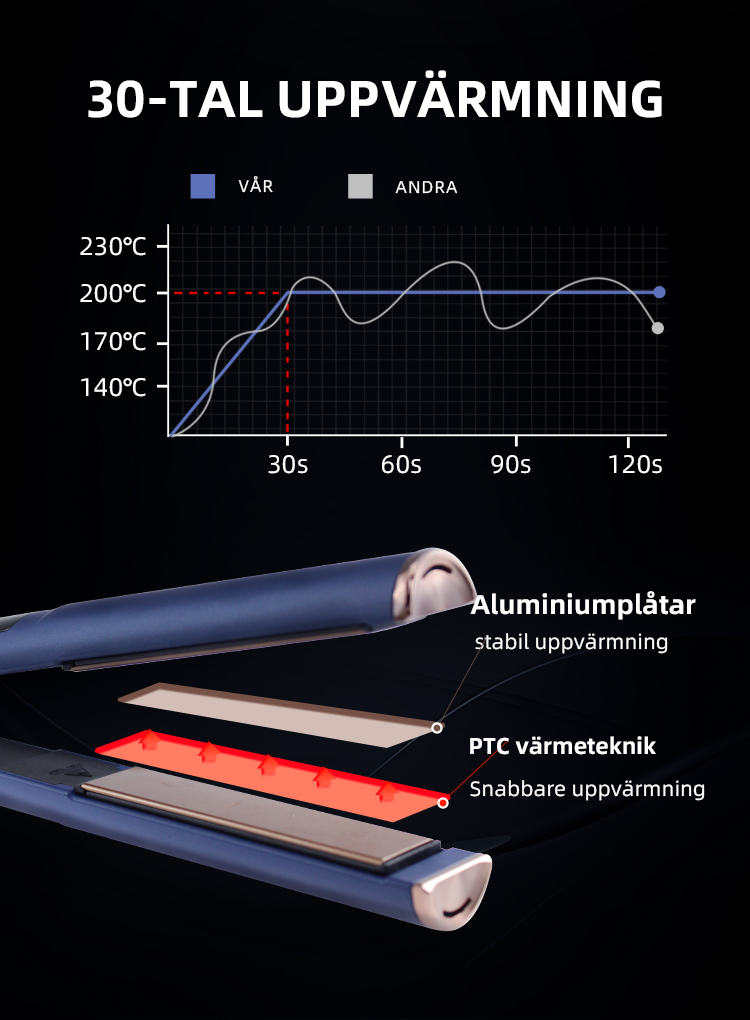 Säker automatisk avstängning, när stylingverktygen arbetar i över 60 minuter, kommer de att stänga av strömmen automatiskt och förlänga livslängden. (Den levereras med värmebeständiga handskar för säker användning.)