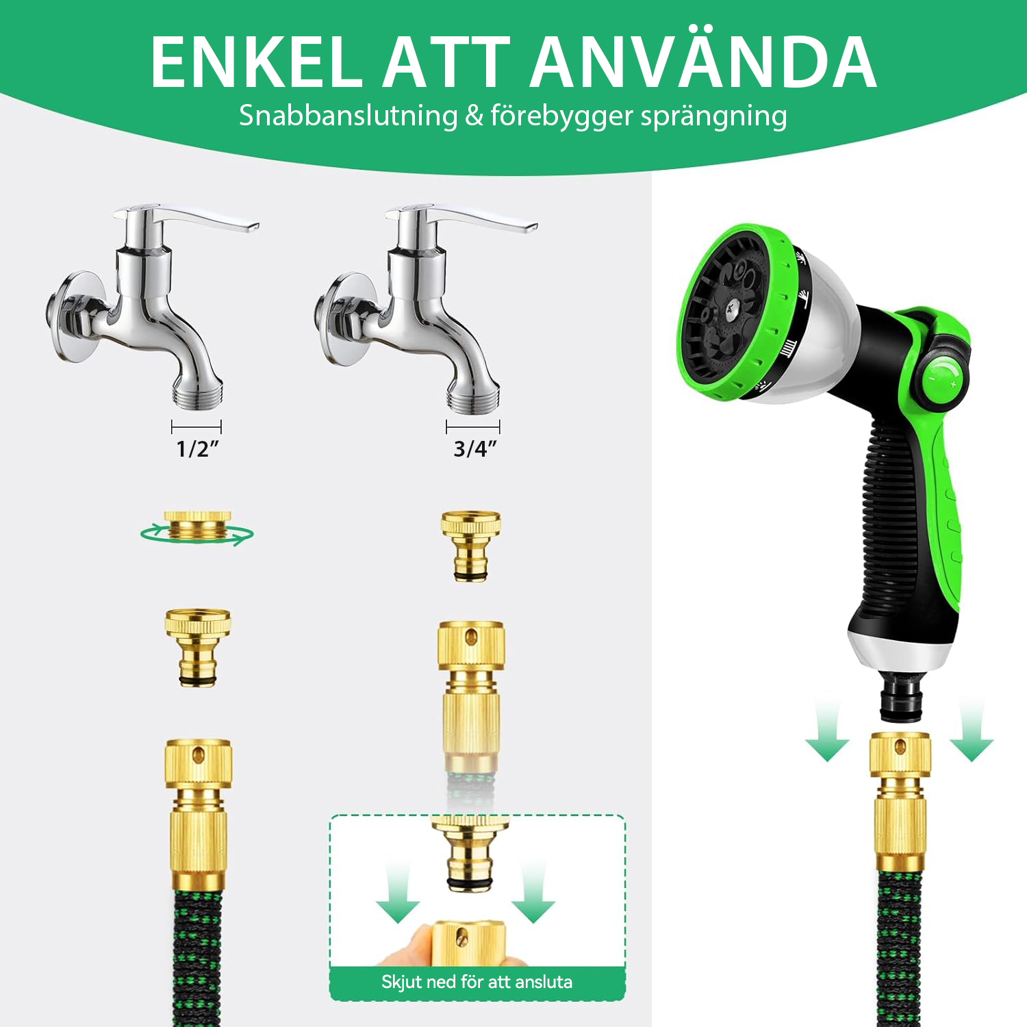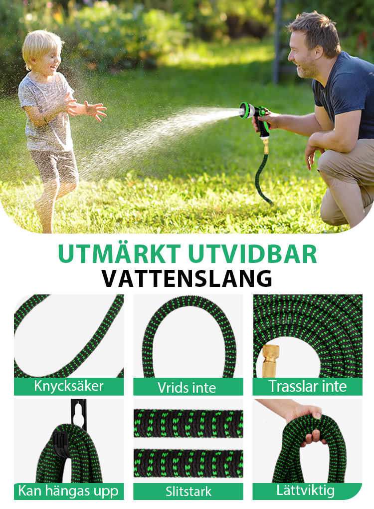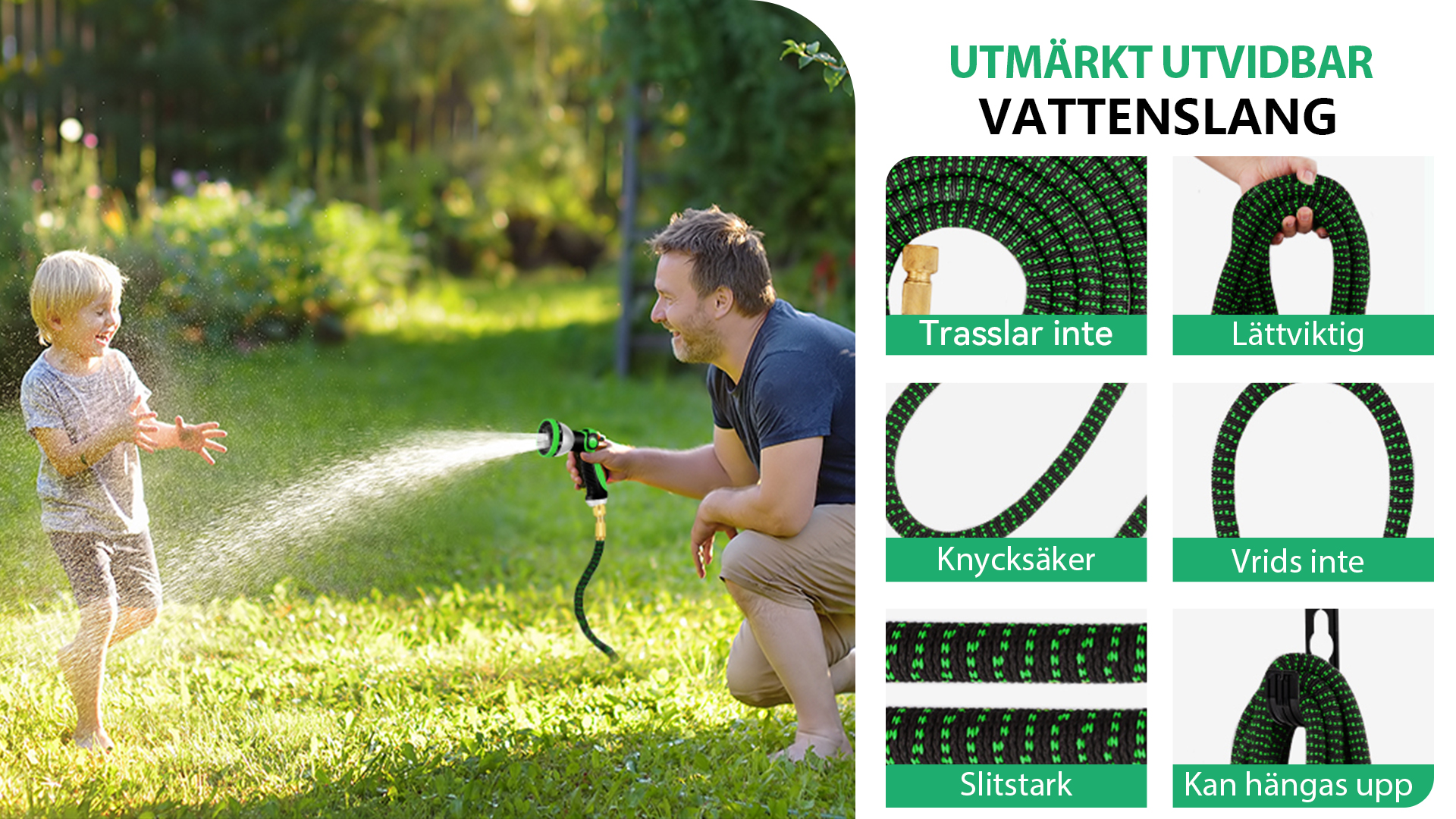 Oavsett om du trädgårdar, rengör eller tvättar din bil är denna läckfria utomhusslang oumbärlig för heta sommardagar. Den utbyggbara trädgårdslangen sparar tid och energi jämfört med traditionella bevattningsmetoder, och support är tillgänglig inom 24 timmar för eventuella frågor.