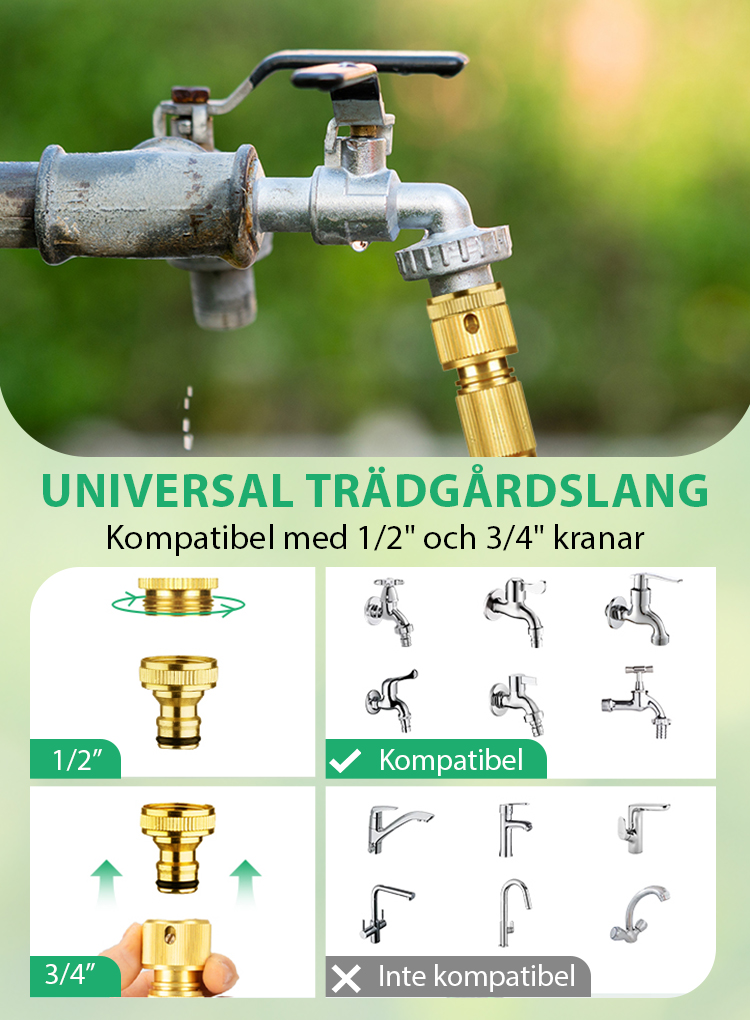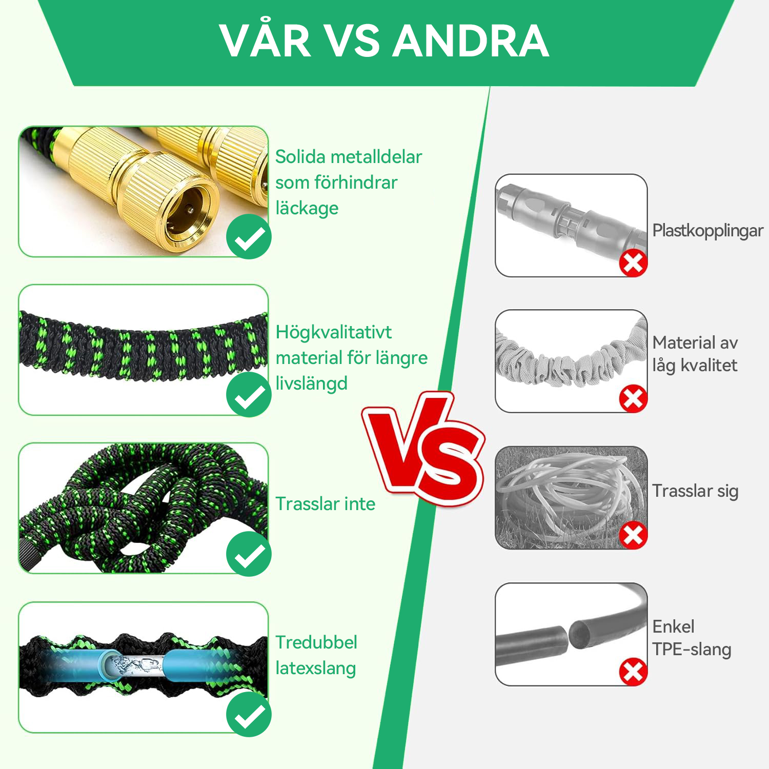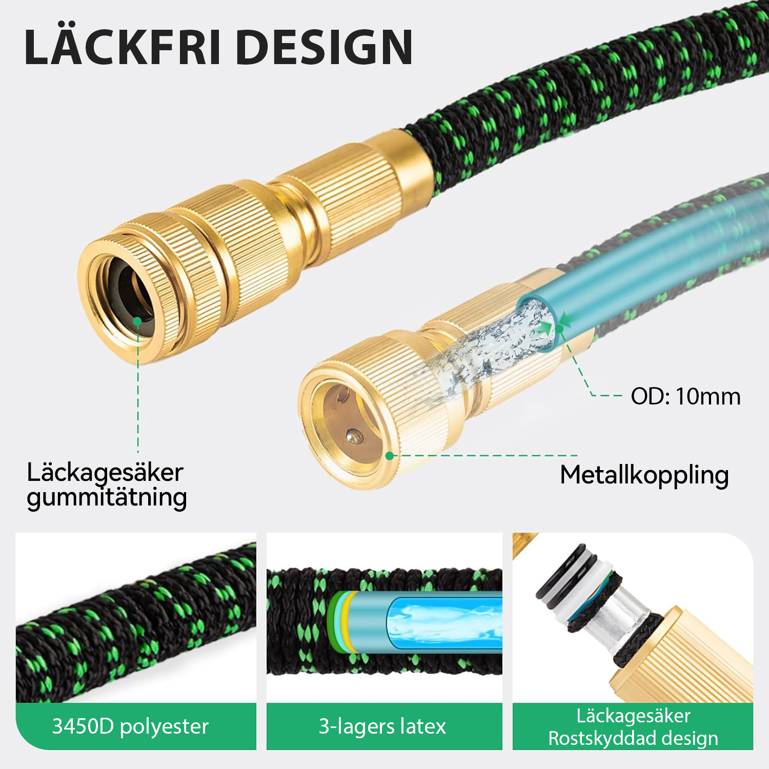 Oavsett om du trädgårdar, rengör eller tvättar din bil är denna läckfria utomhusslang oumbärlig för heta sommardagar. Den utbyggbara trädgårdslangen sparar tid och energi jämfört med traditionella bevattningsmetoder, och support är tillgänglig inom 24 timmar för eventuella frågor.