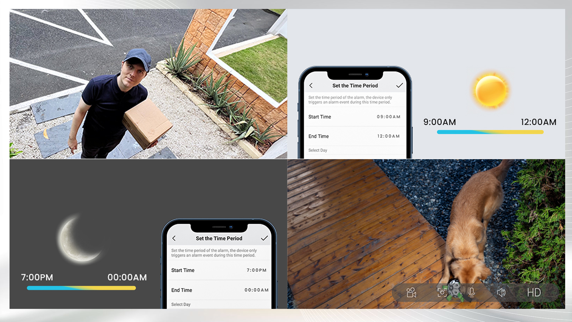 Den trådlösa säkerhetskameran stöder AI & PIR detektion med siren som kan känna igen människor, husdjur, paket eller bilar, vilket garanterar noggrann detektion och färre falska larm. Håll dig informerad och reagera snabbt på potentiella säkerhetshot, vilket ökar din omgivnings säkerhet.