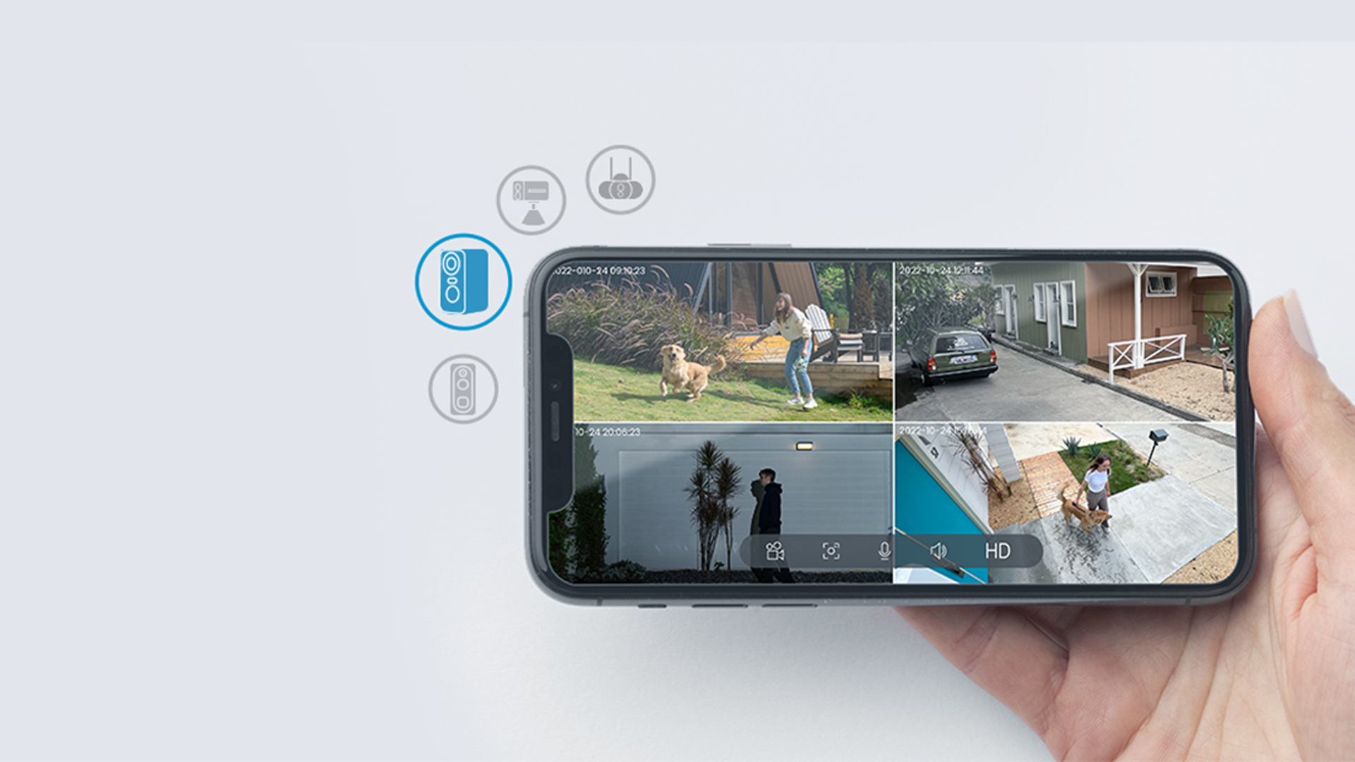 Utrustad med en stark strålkastare – när rörelse upptäckts på natten tänds strålkastaren och den trådlösa kameran börjar spela in färgvideo. Om ingen rörelse upptäckts släcks strålkastaren automatiskt.