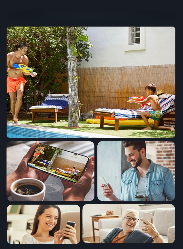 Förvandla din säkerhetsupplevelse med kamerans tvåvägsljudsfunktion. Delta i realtidskonversationer med vänner eller familj utanför ditt hus, eller använd den för att varna potentiella inkräktare. Samtidigt tillåter vår säkerhetskamera flera användare att få åtkomst till och dela videoströmmen, vilket främjar en kollektiv strategi för säkerhet.