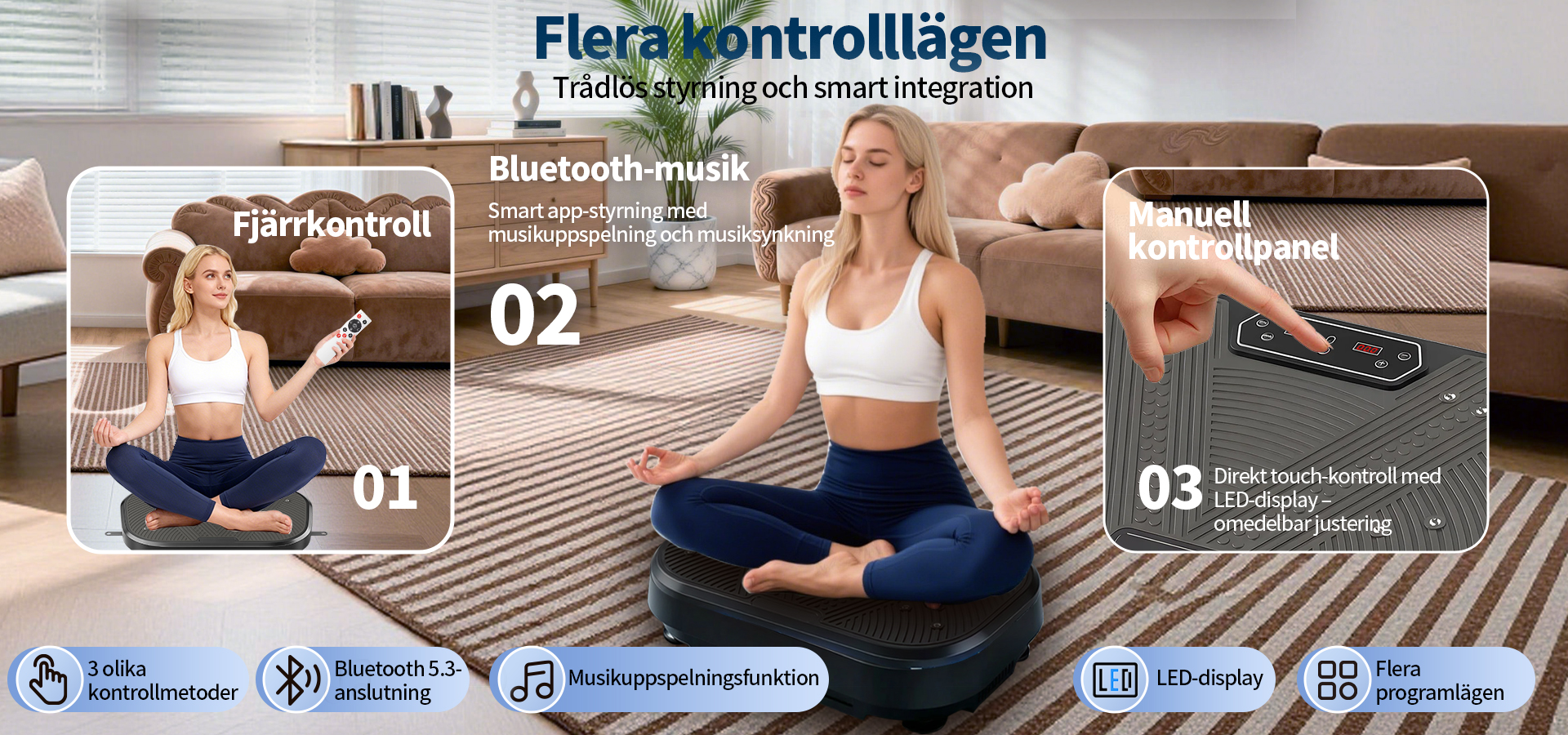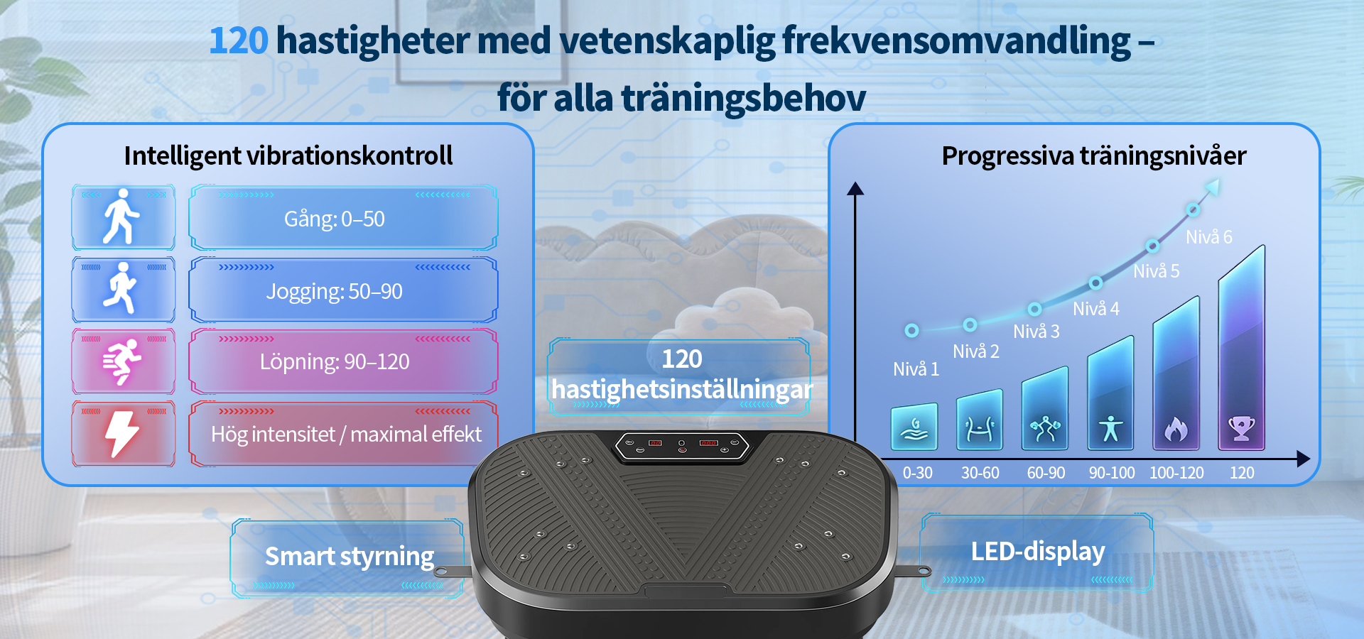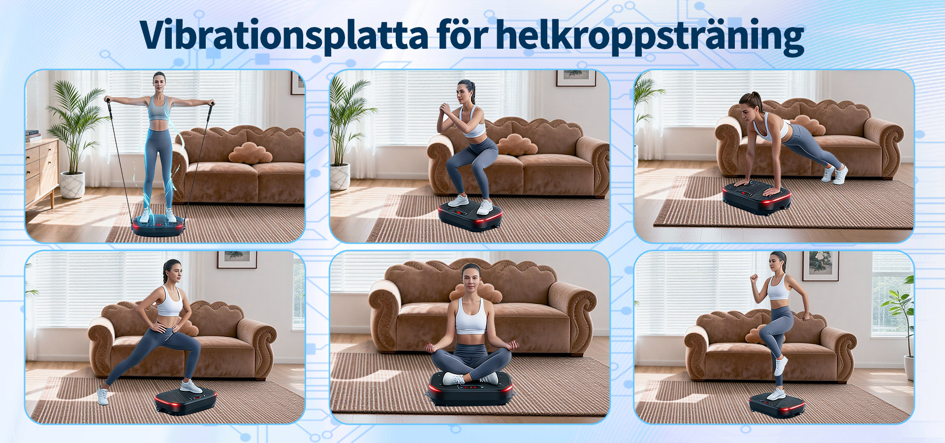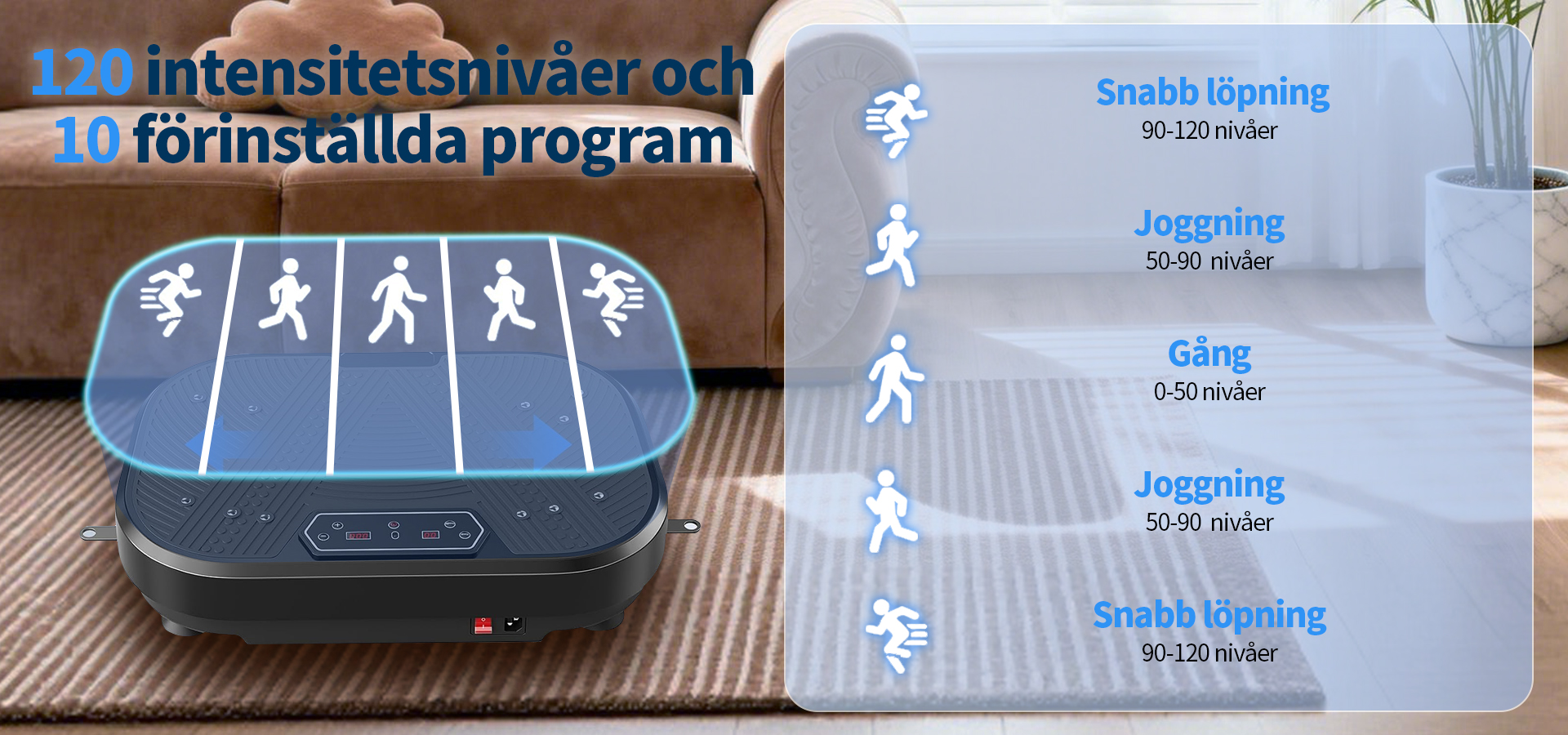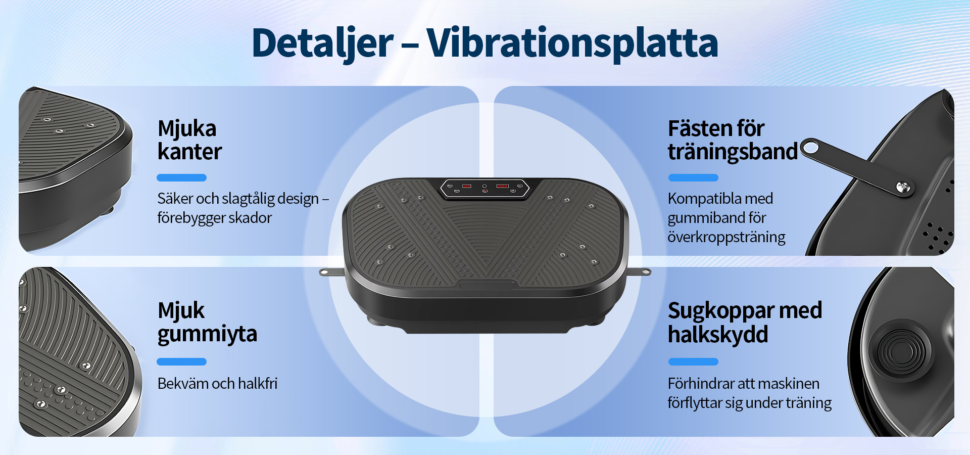 Utrustad med en uppgraderad högpresterande motor och vår avancerade "Dubbel Verkan-teknologi" garanterar vi inte bara kraftfulla och stabila vibrationer, utan även en effektiv energiöverföring till hela kroppen. Detta gör varje träningspass mer effektivt. Oavsett om du vill aktivera musklerna eller förbättra träningsresultaten, kommer du snabbt att märka en betydande skillnad.